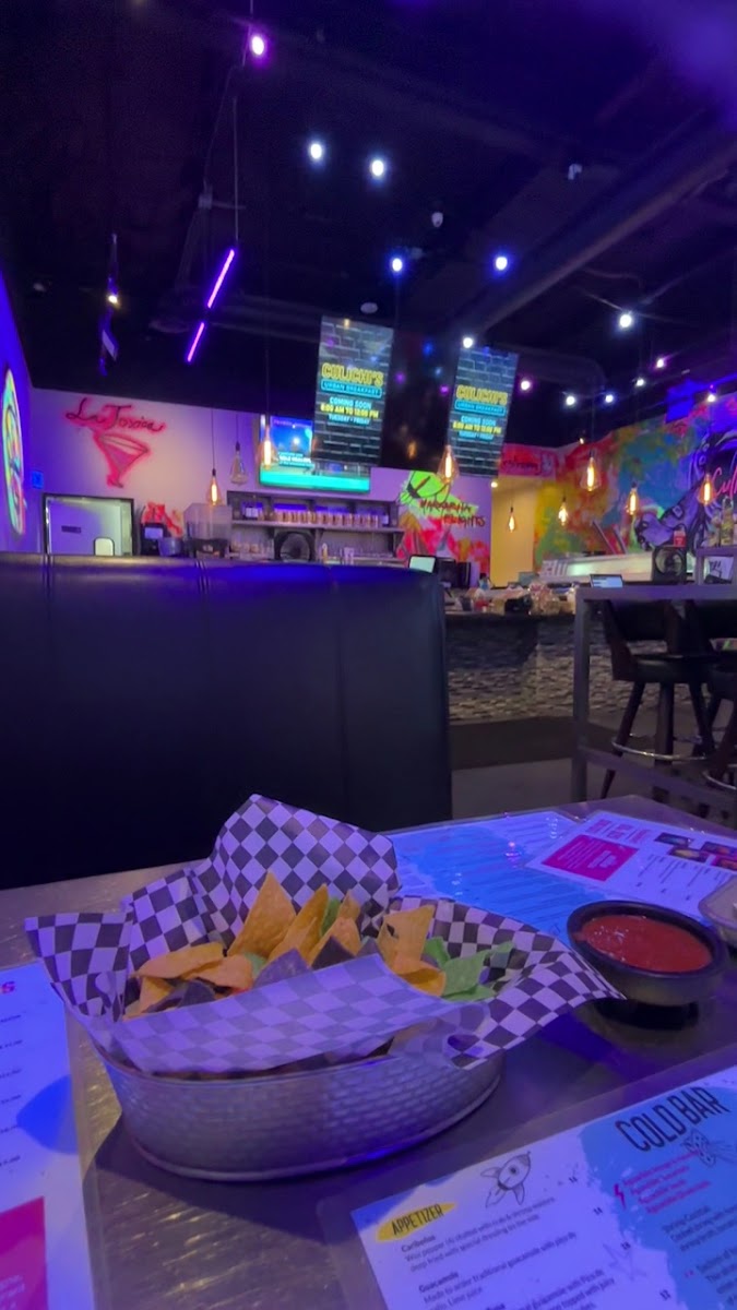Blue corn tortilla with guacamole base, crunchy octopus tentacle, Pico de Gallo and chipotle aioli